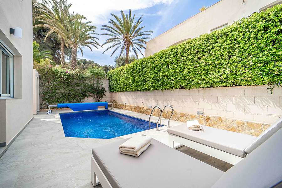 Conveniently located near restaurants, bars, cafes and shops. Air conditioning throughout is included in the prices for all seasons. Private swimming pool, terraces and outdoor lounge and dining furniture. Use of large community pool and gardens.