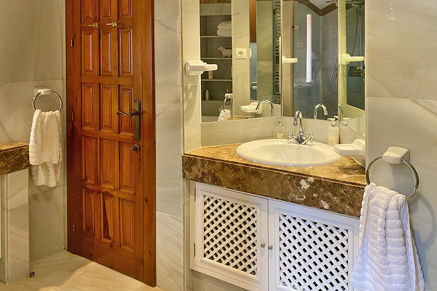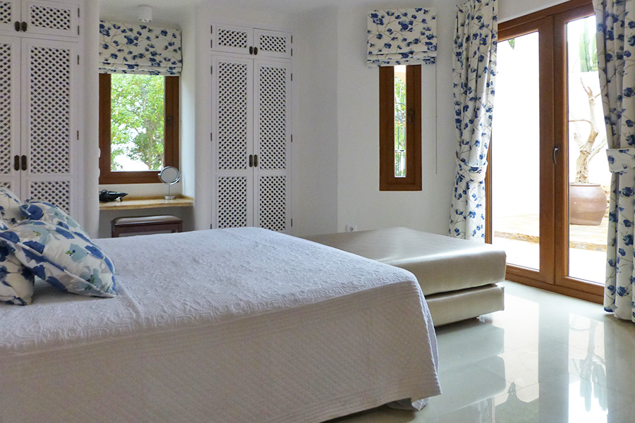 Master bedroom – King size bed. En-suite bathroom – Walk-in shower, bath, basin and wc.