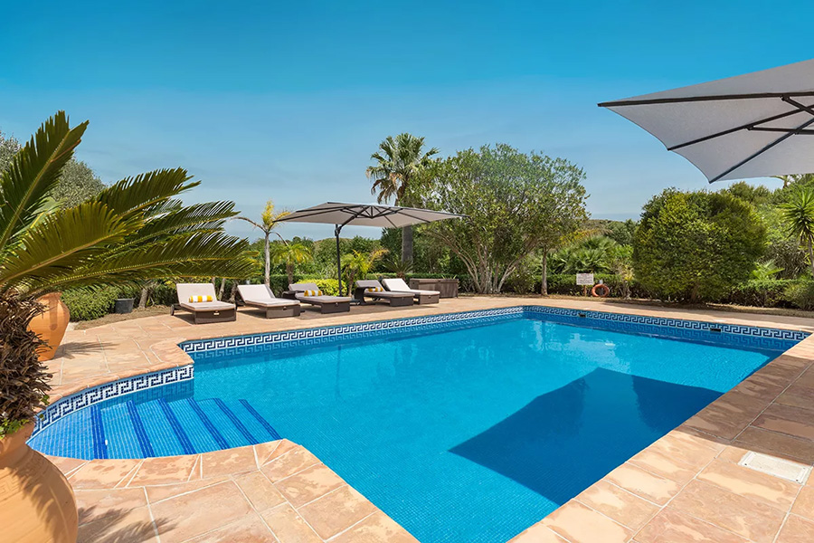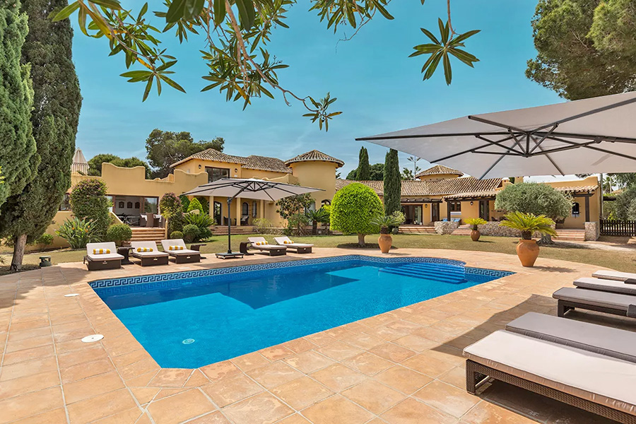 Fabulous detached villa, 5 bedrooms, large garden, private pool and terraces, near to the South Course. Free wifi.