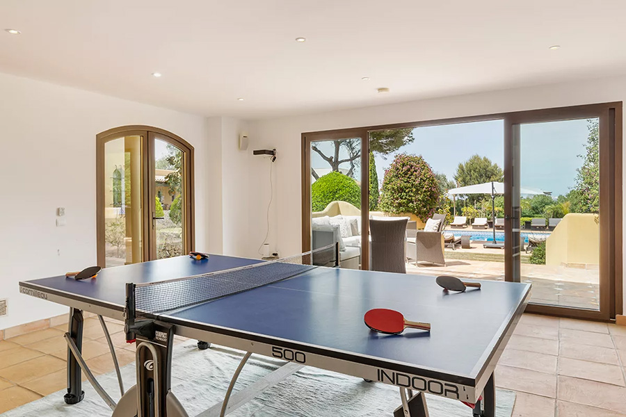 There is a games room with table tennis table and a shower room. There is also a cloakroom.