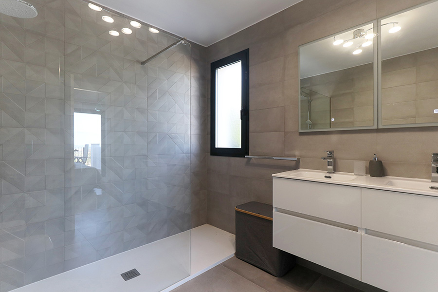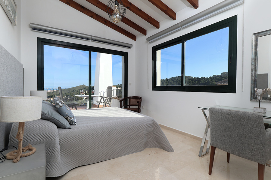 Also on this lower level the master bedroom has a large double bed and patio doors to the terrace with great views. This bedroom also has an en-suite shower room.