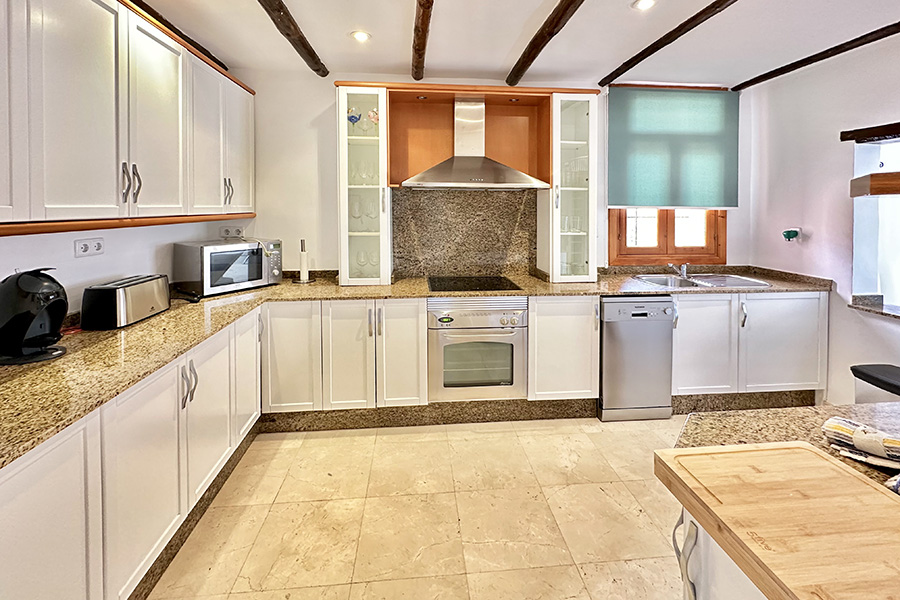 From the hallway enter the comfortable lounge and dining room which has satellite or cable TV. There are large patio doors onto a terrace with a private swimming pool. Enjoy al fresco dining from the barbecue, or just relax on the sun loungers.