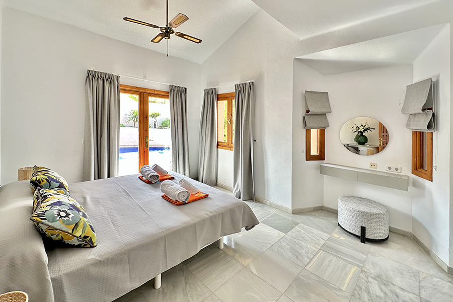 This detached three bedroom villa is spacious and well equipped. It has a large sunny terrace and private pool. There is free wireless internet access.