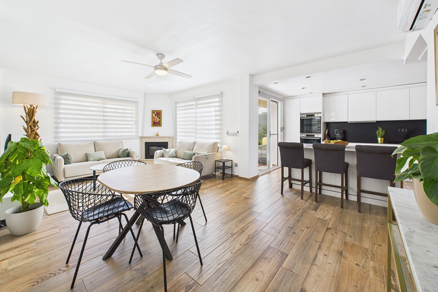 Open plan lounge, dining room and kitchen: Stylishly furnished with sofas, coffee table, satellite or cable TV, dining table and chairs, with access to the outside terrace with outside lounge furniture and gas barbecue.