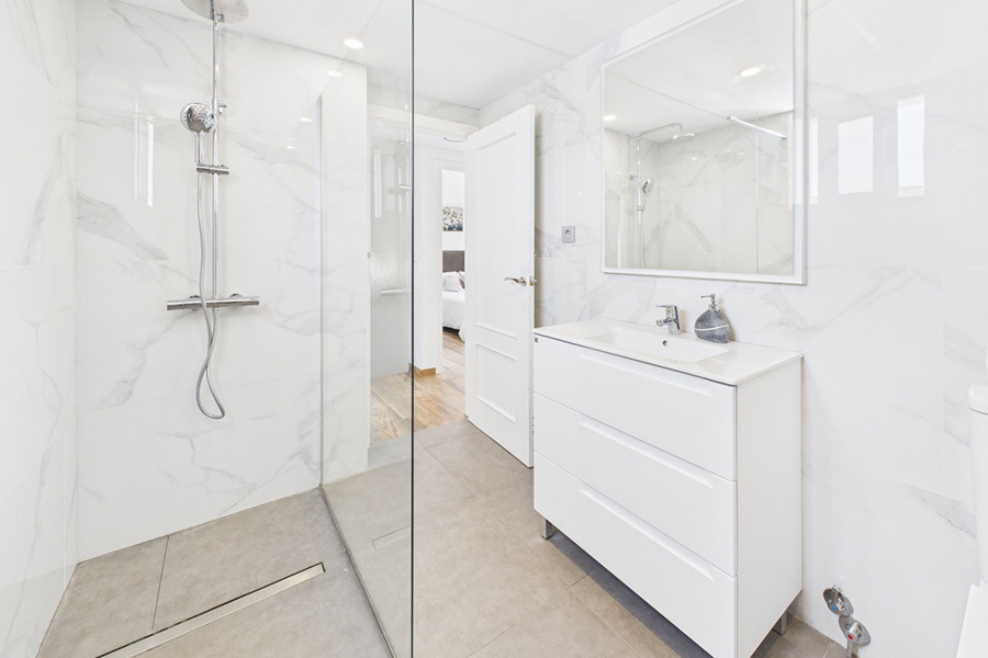Bathroom 2: Walk-in shower, basin and wc.